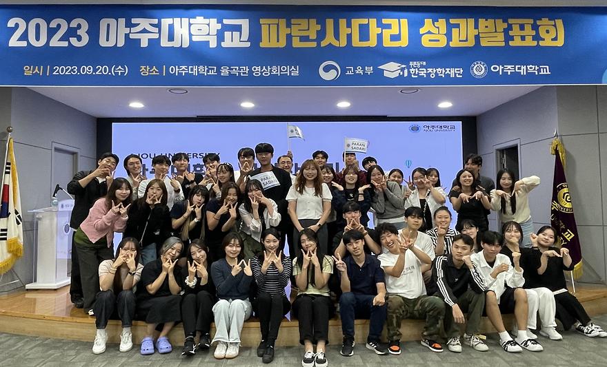 The summer 2023 performance presentation for Paran Sadari was held. Paran Sadari is an overseas training program organized by the Korea Student Aid Foundation to help financially-disadvantaged university students with their self-development and career exploration efforts.The performance presentation was held on September 20 in the video conference room of Ajou University’s Yulgok Hall, attended by President Choi Kee-choo, university staff, and program participants, who had visited George Mason University and University of Washington in July. The students shared their experiences, achievements, and memories of their time during the training. The event also featured a conversation with the president, award presentation, prize lottery, and tea party.This summer, the Paran Sadari program was conducted at George Mason University and the University of Washington, both in the United States. A total of 50 students, including 42 Ajou University students and eight students from two other universities in the Seoul metropolitan zone, were divided into two groups of 25 for each university. The students attended an intensive English program for three weeks in July and August and participated in various experiential activities. George Mason University is a state university engaged in advanced research in Fairfax, Virgina, and the University of Washington is a public university in Seattle, Washington.Park Seung-eun, one of the program participants (Cybersecurity, age 20, George Mason University), said, "While I talked about various topics with students there, I was impressed by their dedication and passion for their studies and life. I made up my mind to become a person who has a dream and works hard to achieve it."Yang Dong-min (Transportation Systems, age 18, University of Washington) said, "I planned to find and record at least one piece of knowledge about transportation related to my major every day during the program. The program gave me a valuable opportunity to broaden my horizons and gain experience."To the students, President Choi Kee-choo said, "I hope the Paran Sadari program helped motivate you to realize your dreams. I urge you to share the valuable information and experiences you have gained with other participants of future sessions.” Paran Sadari is an overseas training program for financially-disadvantaged students. It was originally based on Ajou University’s AFTER YOU program, which was launched in 2015. Organized by the Ministry of Education and Korea Student Aid Foundation, the program has supported training costs for 850 students from 17 universities nationwide. Host universities are divided into: the Seoul metropolitan zone, Chungcheong/Gangwon zone, Honam/Jeju zone, Daegu/Gyeongbuk zone, and Busan/Ulsan zone. In the Seoul metropolitan zone, Ajou University, Ansan University, and Osan University participated. The host universities operate training programs and provide the participants with career mentoring before and after the program.Participants are selected based on their future potential and commitment to self-development instead of credits and language proficiency, which are the criteria used by Ajou University’s AFTER YOU program. The program is entirely funded by the Korea Student Aid Foundation and host universities.Conversation with President Choi Kee-choo Student Park Seong-eun presenting the results of her endeavors# Go to Ajou University blog- [Photo Sketch] 2023 SUMMER GLOBAL CAMPUS