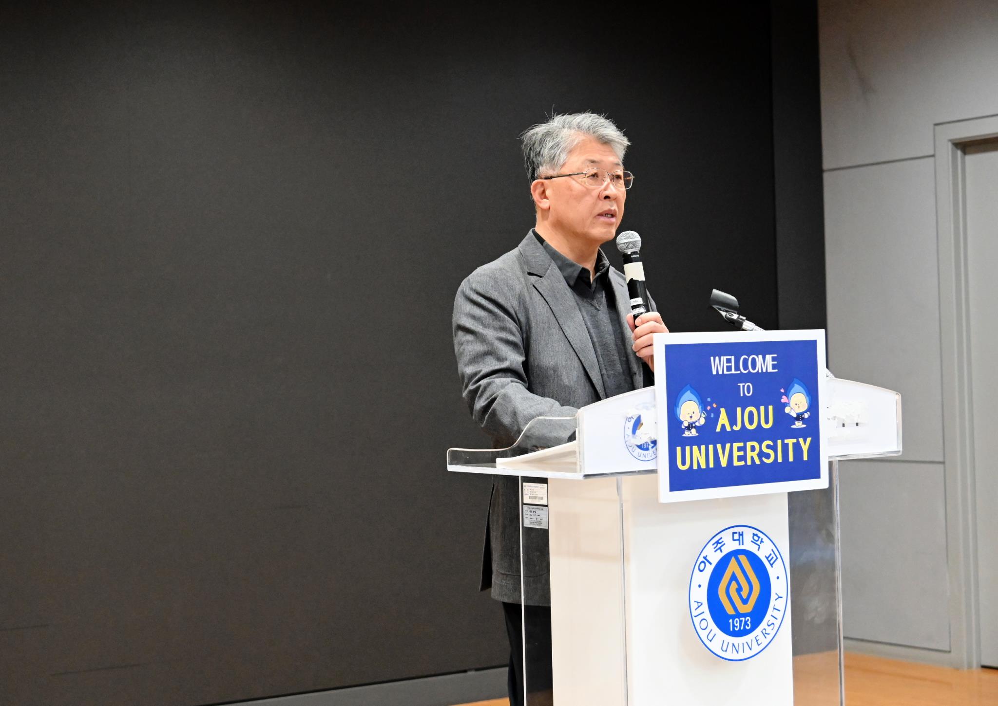 아주가족을 대표해 환영의 인사를 전하는 최기주 총장