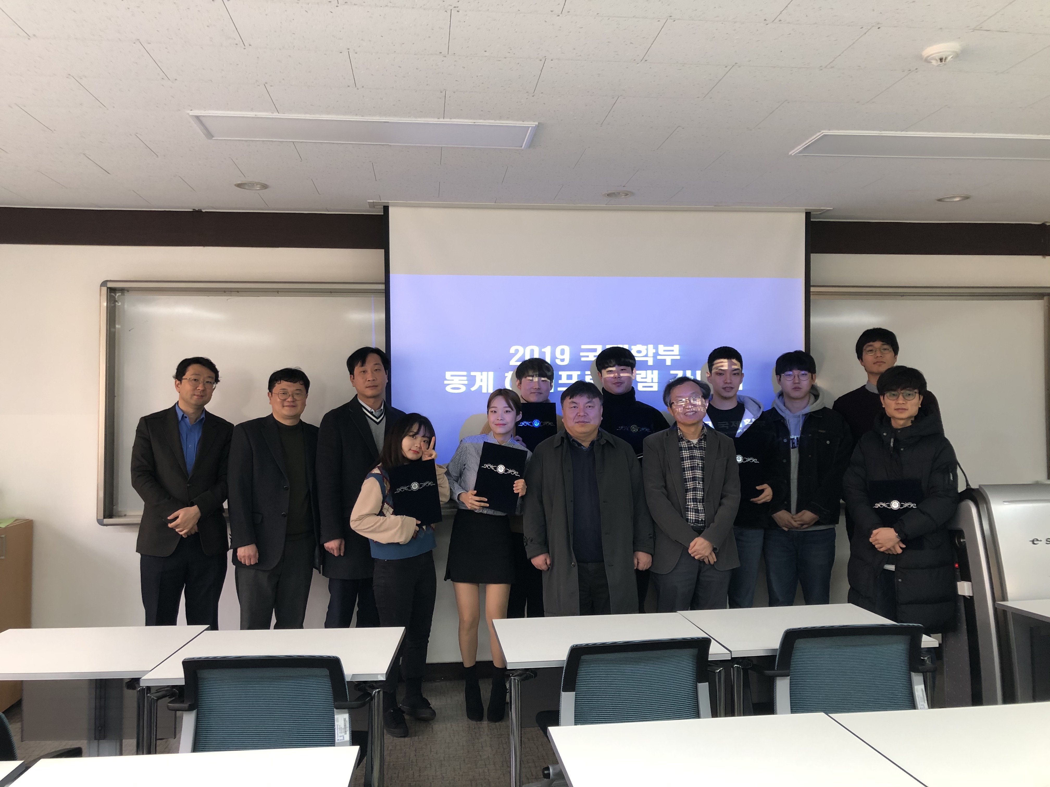 [국제학부] 2019 동계 아시아공동체론 및 해외현장조사 시상식 개최 <해외현장조사><아시아공동체론>국제학부는 1월29일 율곡관 257호에서 아시아공동체론 및 해외현장조사를 다녀온 학생들을 대상으로 장학증서와 상장, 그리고 장학금을 전달하는 자리를 마련하였다. 시상식은 한시간 가량 진행되었고, 약30여명의 학생들이 참여하였다. 아시아공동체론의 장학증서와 해외현장조사를 다녀온 학생들의 에세이 중 팀별과 개인별 에세이를 선정하여 상장과 장학금을 교수님이 직접 전달하였다. 아시아공동체론 장학생들과 해외현장조사를 체험한 학생들이 후기와 수상소감을 발표하면서 서로의 경험을 공유하였다. 국제학부장 김종식 교수님을 포함한 김한성교수님, 박성빈교수님, 이상신교수님, 이병호교수님, 한상준교수님께서는 시상식에 참여한 학생들에게 이러한 다양한 프로그램의 참여를 권유하면서 진로에 도움되는 이야기들을 하는 시간을 가졌다. 이와 같은 시상식과 학생들의 참여를 통해 더많은 관심들을 가지고 국제학부 내의 많은 프로그램에 참여하길 기대한다.