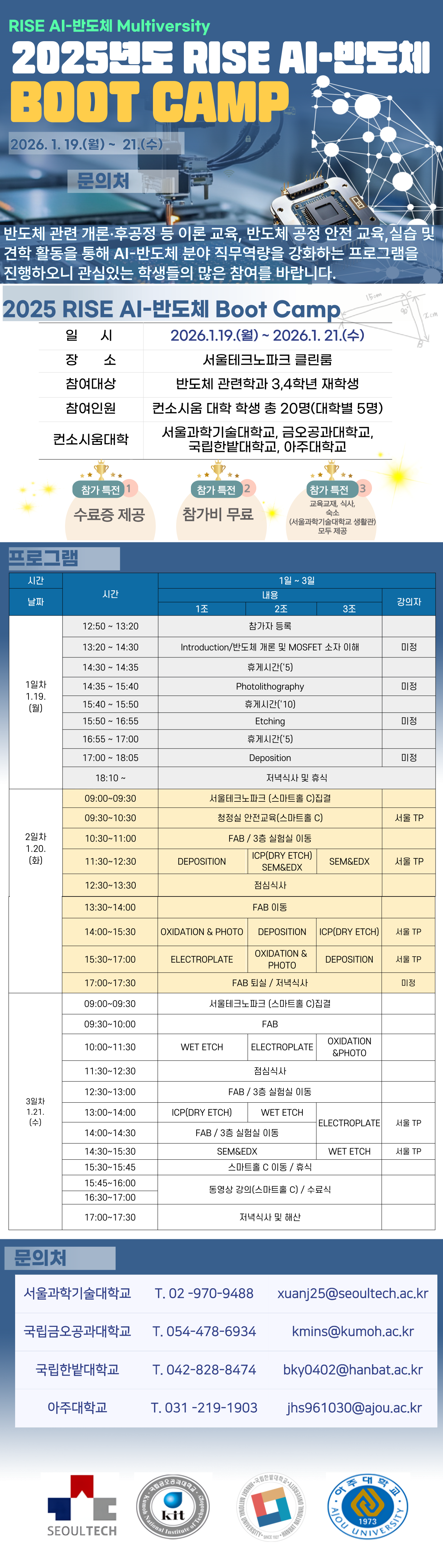[비교과] (모집마감)[RISE] 2025 AI-반도체 Boot Camp 교육생 모집(무료)(~12.21.(일)까지)