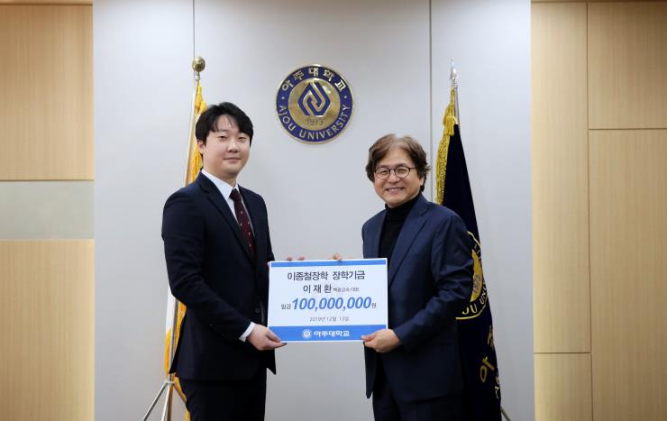 이재환 백광금속 대표가 우리 학교에 1억원의 장학금을 기부했다. 이 기금은 ‘이종철 장학’ 기금으로 우리 학교 학생들을 위해 사용될 예정이다.12월13일, 율곡관 총장실에서 이재환 백광금속 대표와 부친인 이종철 아경장학재단 이사장이 참석한 가운데 기념 행사가 마련됐다. 박형주 총장이 직접 기부자에게 감사의 뜻을 전했다.