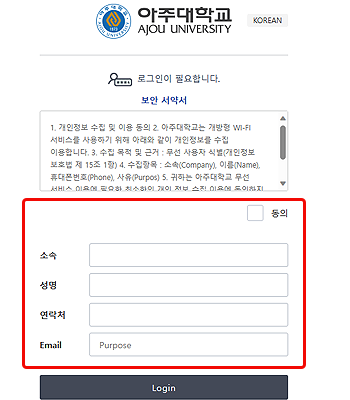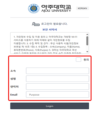 3. 관리자에게 발급 받은 ID/PASSWORD 입력