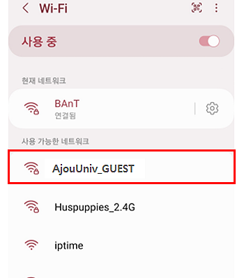 4. Wi-Fi SSID 목록 중 “AjouUniv_GUEST” 클릭