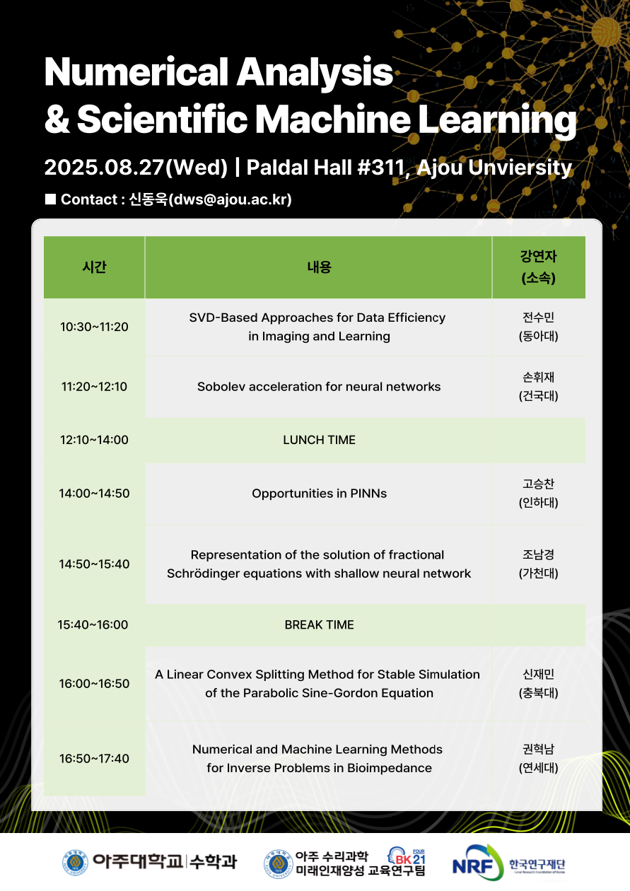 [2025.08.27(수)] Numerical Analysis & Scientific Machine Learning Workshop 개최 안내