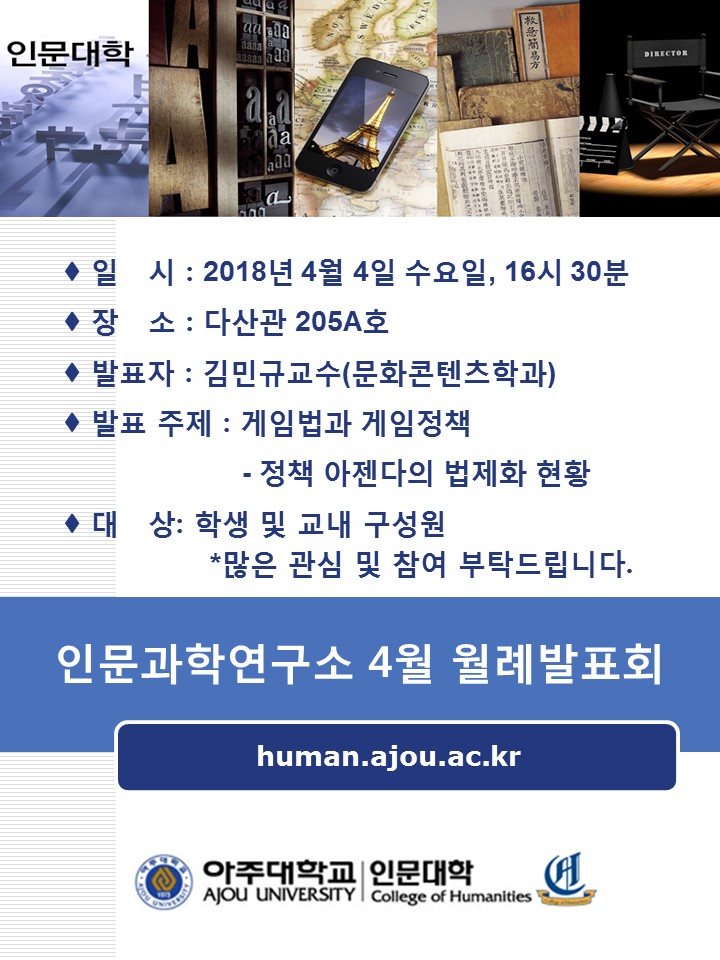 | 619 | 세미나/포럼 | 교내 | 김영수 | 2018-03-23 | ||