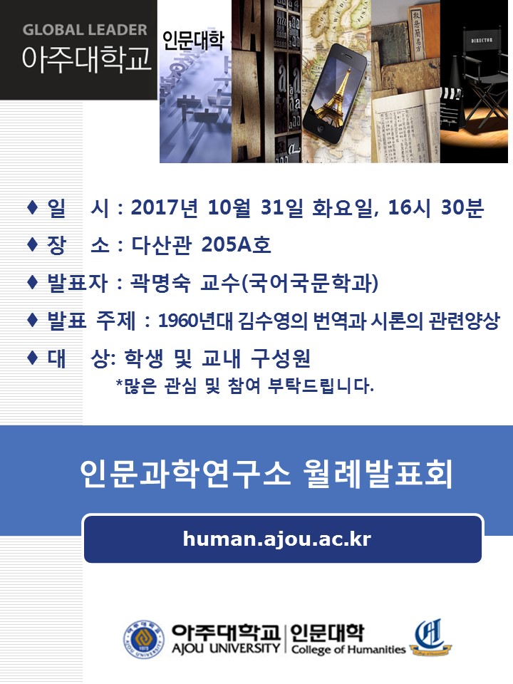 | 562 | 세미나/포럼 | 교내 | 김수현 | 2017-10-17 | ||