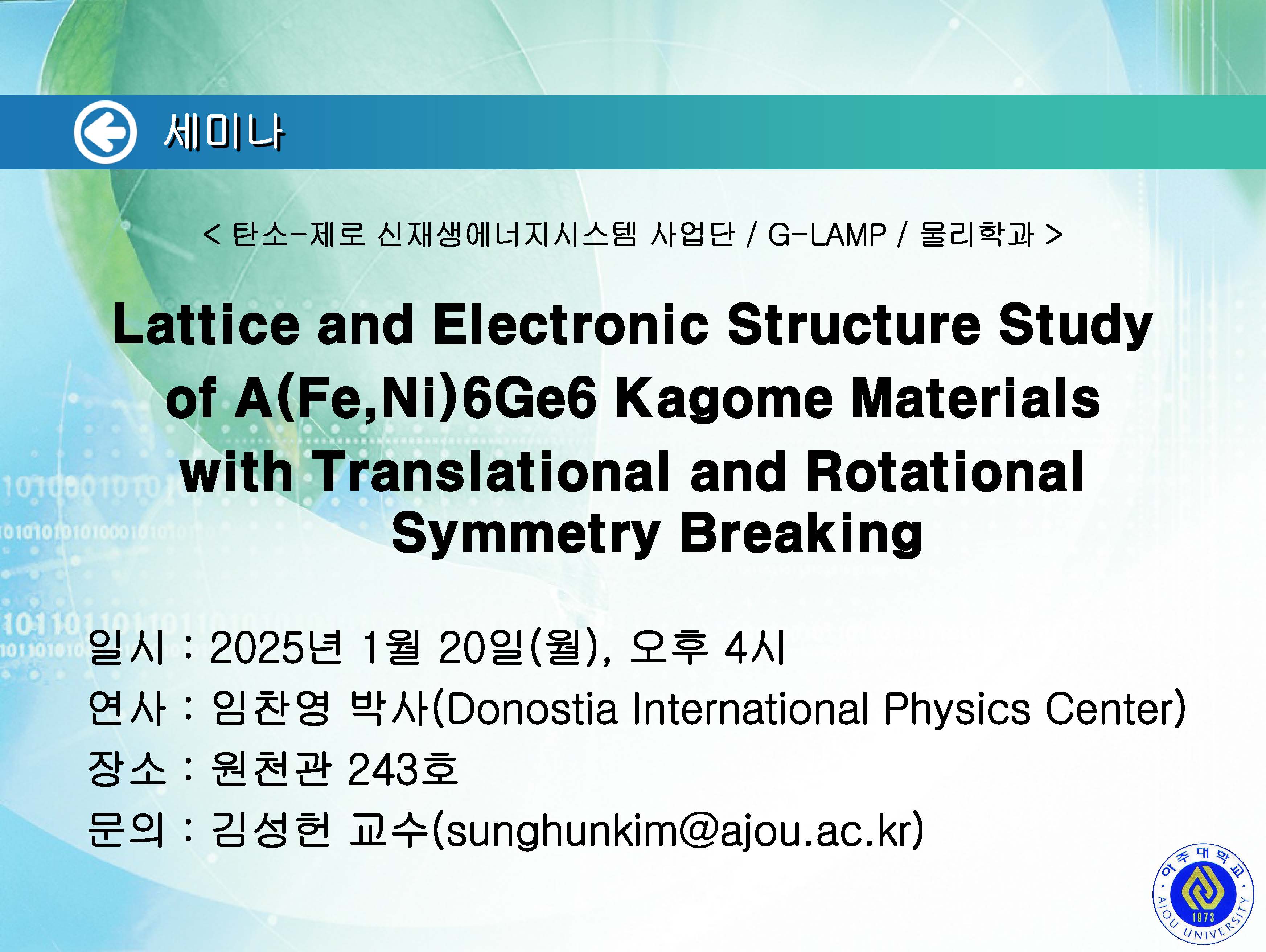 | 1707 | 세미나/포럼 | 교내 | 박미연 | 2025-01-17 | ||