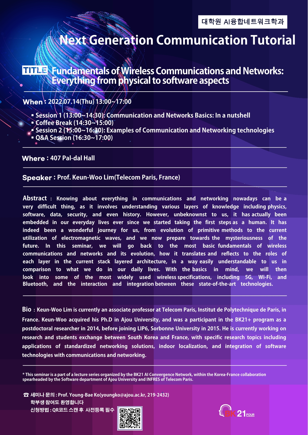 [2022.07.14(목)] [대학원 AI융합네트워크학과] Next Generation Communication Tutorial 개최 안내
