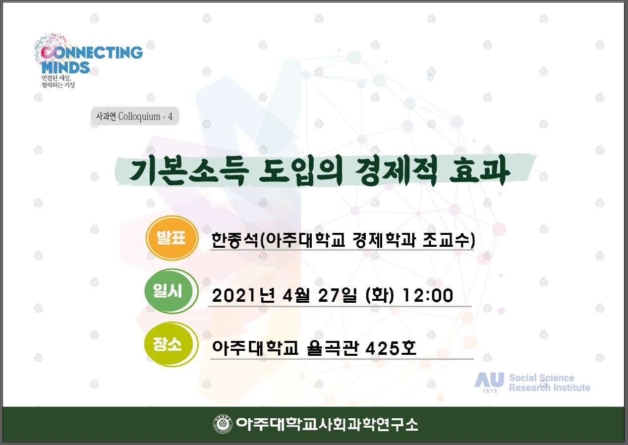 [2021.04.28.(수) 16:30] Artificial Intelligence & AI Convergence Network Colloquium개최 안내